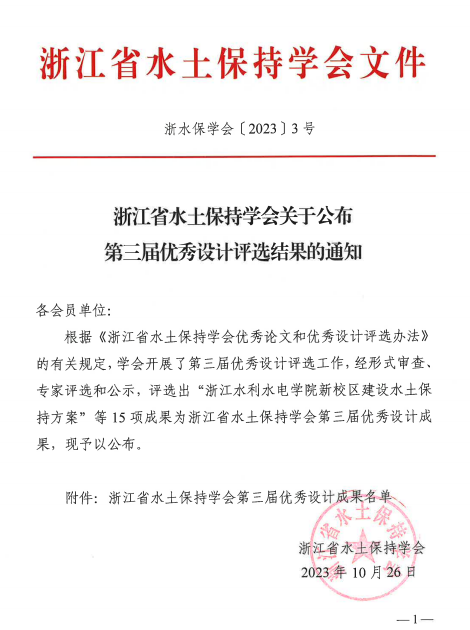 喜報(bào) | 我院項(xiàng)目榮獲浙江省水土保持優(yōu)秀設(shè)計(jì)