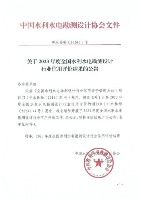 4項(xiàng)AAA,3項(xiàng)AAA+!我院在2023年度水利建設(shè)市場主體及全國水利水電勘測設(shè)計(jì)行業(yè)信用評價(jià)中再創(chuàng)佳績
