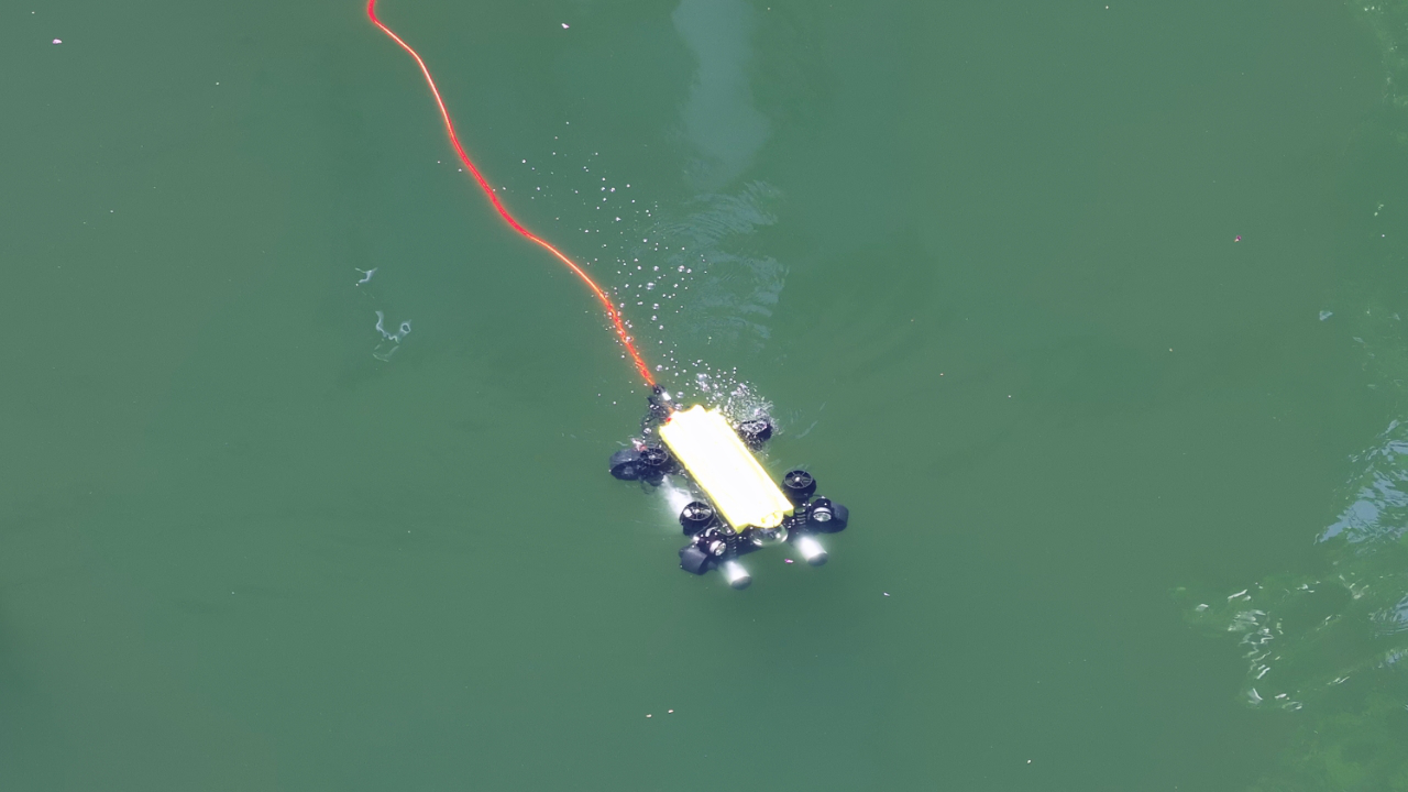“水下監(jiān)管員”水下機(jī)器人由岸基控制臺(tái)、水下本體、通訊和供電系統(tǒng)、輔助工具、傳感器和用戶模塊組成。水下機(jī)器人不僅能夠通過高清影像實(shí)時(shí)檢測(cè)水質(zhì)指標(biāo)、排查壩體閘門隱患,徹底解決人工巡檢的盲區(qū)難題;還能如“清道夫”般穿梭于壩體之間,清理水下雜物淤積,提升水庫蓄水調(diào)節(jié)能力。此外,還能協(xié)助搜索落水物體或人員,為經(jīng)濟(jì)救援提供支撐。
