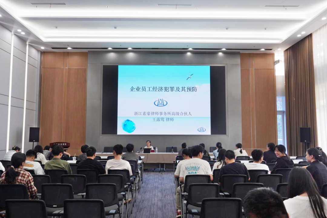 浙江素豪律師事務(wù)所高級(jí)合伙人、寧波市勞動(dòng)人事和社會(huì)保障專業(yè)委員會(huì)高級(jí)顧問王露鶯律師則為現(xiàn)場(chǎng)員工帶來了一場(chǎng)《企業(yè)員工經(jīng)濟(jì)犯罪及預(yù)防》專題宣講。