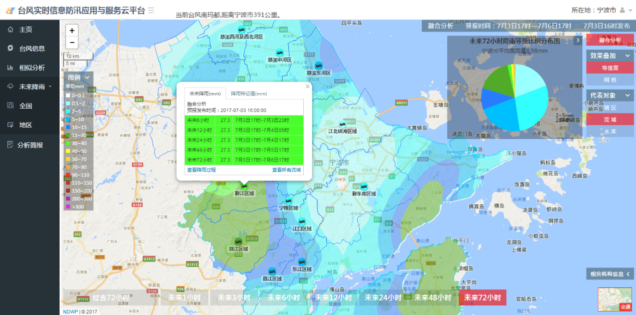 平臺以水行業(yè)對于氣象的需求而誕生的,匯集國內(nèi)外主流氣象機構(gòu)的數(shù)值預報,通過大數(shù)據(jù)、云計算、空間分析以及專業(yè)模型技術,實現(xiàn)天氣實況全掌握、未來降雨全面展現(xiàn)、分析簡報快速生成、預報降雨智能評估、數(shù)據(jù)大屏個性化定制,平臺不僅解決了未來降雨的時間分配,還解決了水利要素的時空分配,為防汛應急等相關提供科學的數(shù)據(jù)支撐,也為模型計算提供準確的邊界條件,提高結(jié)果精度。
