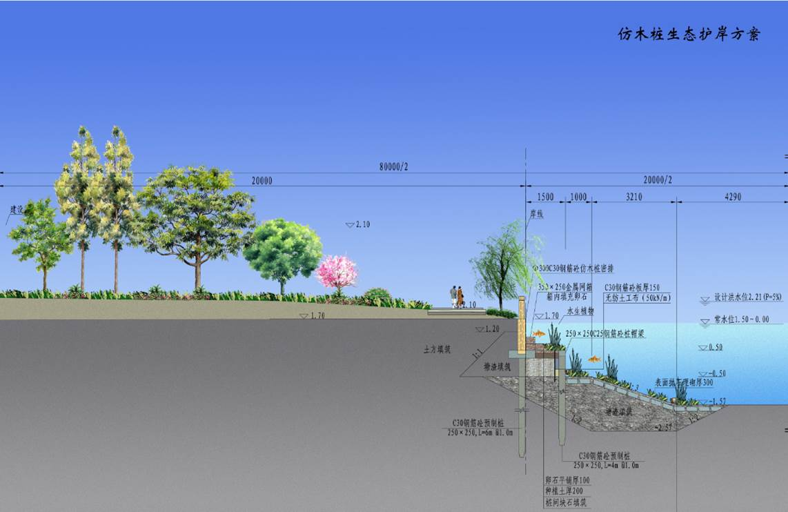 工程位于海曙區(qū)西側(cè),南起鄞江,北至姚江,為實現(xiàn)對海曙西側(cè)山區(qū)洪水的攔截,共整治河道長24km,建設(shè)閘站40座,閘門總凈寬554m,泵站22m3/s,改建新建橋梁42座。其中有3.5km與G228國道并線,為協(xié)調(diào)國道與河道之間用地布局,通過優(yōu)化河道斷面型式和堤線線位,實現(xiàn)了對土地的集約利用,打造一條海曙西部交通和河道的靚麗風(fēng)景線。