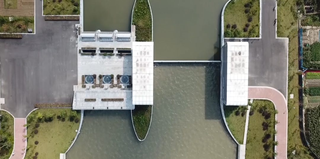 項(xiàng)目建筑設(shè)計(jì)與周邊環(huán)境完美結(jié)合。泵站及閘門上部采用無(wú)廠房設(shè)計(jì),水泵機(jī)組采用立式潛水機(jī)組,閘門采用底軸驅(qū)動(dòng)翻板門,泵站上下游視野通透,觀感效果佳。管理房屋頂設(shè)計(jì)為綠化屋頂,管理房隱藏于周邊綠化之中,滿足姚江岸高標(biāo)準(zhǔn)景觀要求。生態(tài)河道設(shè)計(jì)符合人文和諧之美。護(hù)岸采用干壘生態(tài)擋塊,中間預(yù)留魚(yú)槽設(shè)計(jì),充分體現(xiàn)了生態(tài)環(huán)保設(shè)計(jì)理念。