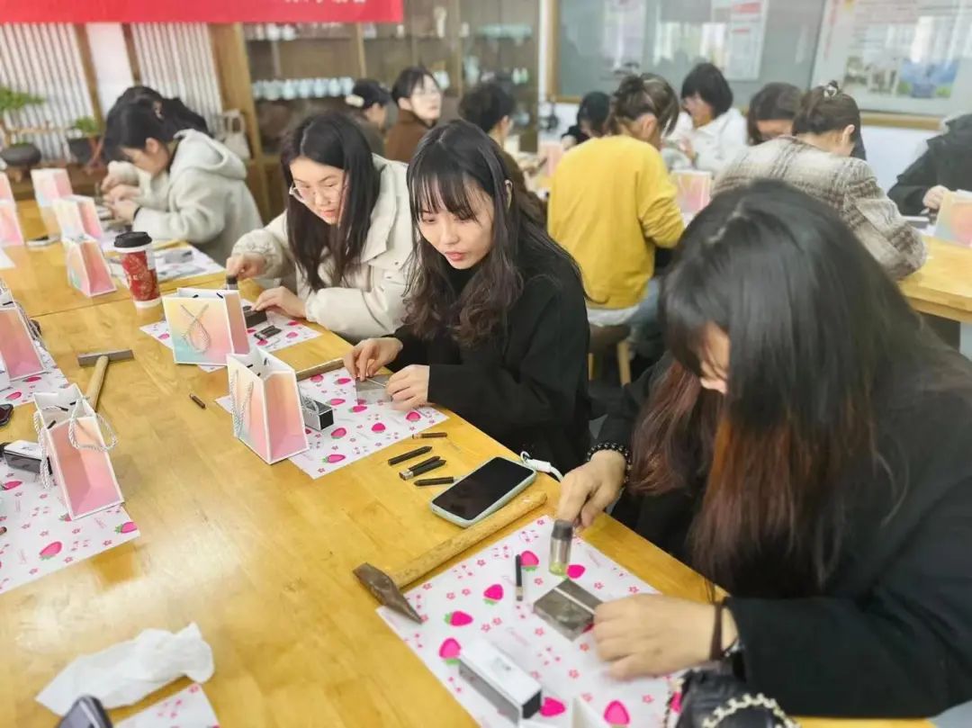 活動(dòng)當(dāng)天,女職工們按時(shí)到達(dá)活動(dòng)教室,發(fā)揮巧思,施展妙手,或是“掐絲、剪絲、上砂、上膠”,或是“測(cè)量、造型、印刻、拋光”,或是“和面、打發(fā)、烘烤、裝點(diǎn)”,解鎖了一系列全新的體驗(yàn),收獲了節(jié)日的快樂(lè)和美好。